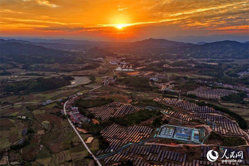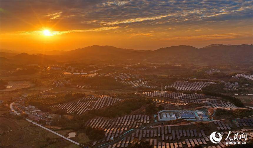 人民网广昌11月21日电 (记者朱海鹏)11月20日,江西省抚州市广昌县千善乡的华润广昌千善光伏项目基地,鳞次栉比的光伏板熠熠生辉。